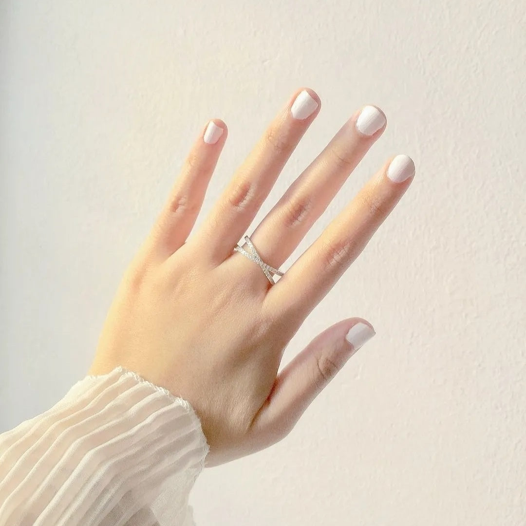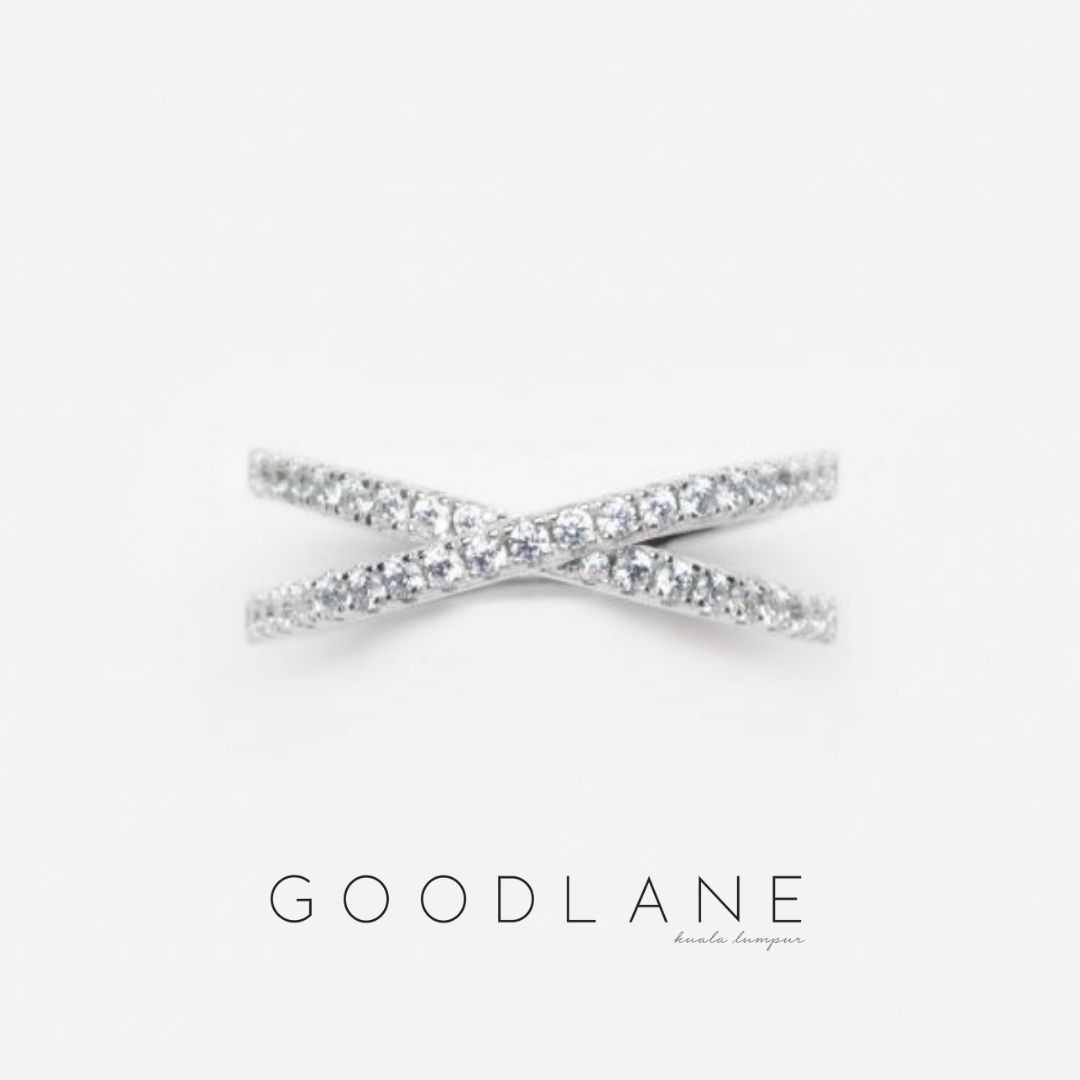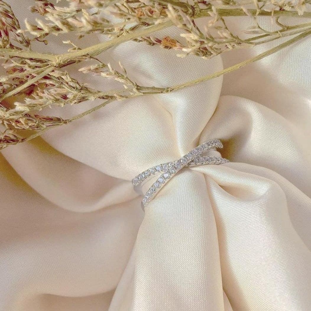 Description: Overlapping 1.4mm Thick Cross Band with Cubic Zirconia Stones