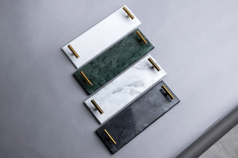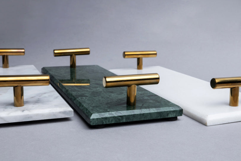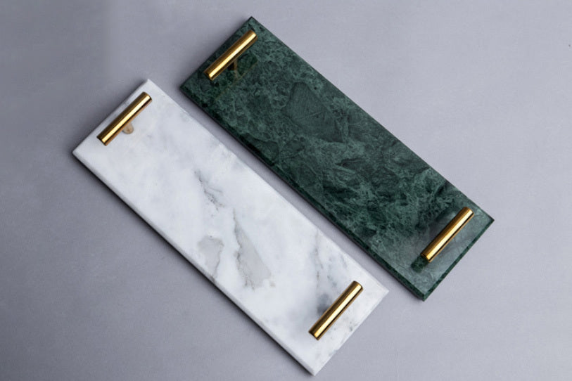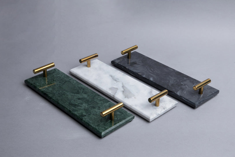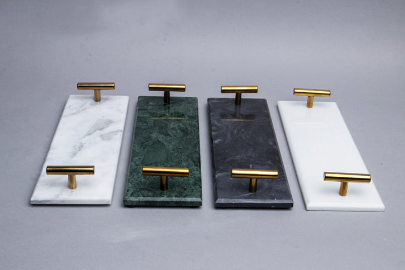 Great as a gift on any occasion, an add-on to your gift package, or a little self-indulgence in any season. Adds style and additional protection to your table setting with our marble tray with gold handles. These trays will work beautifully with any room décor.